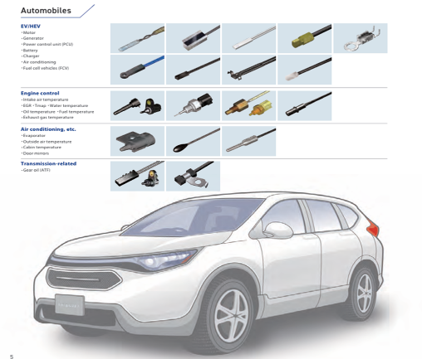 *特點:溫度範圍從 -50 度到 1,000 度,熱敏電阻技術具有高附加值。